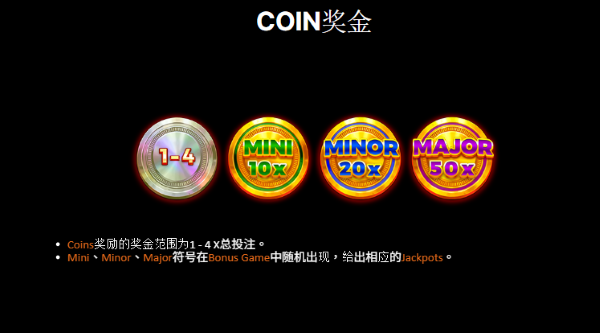 在符號設計上,核心圍繞「金幣系統」進行延伸,所有關鍵機制幾乎都與金幣價值累積及轉化有關。Sticky Coin象徵的是價值的暫時保留,出現在盤面上就不隨一般轉動消失,代表潛在獎勵被鎖定且塑造期待,而基本的Coin符號則提供1至4倍投注的直接回報,作為整體收益的基礎單位。延伸的Jackpot Coin則不只是數值提升,是將金幣從「單次收益」轉為「階段性爆發」的過程,讓玩家在辨識符號時,能直觀感受到不同層級的價值差異。
