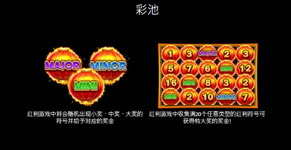 彩池系統將進一步提升紅利遊戲的層次感。在紅利過程中,MINI、MINOR與MAJOR等不同層級的符號,會隨機出現在盤面上,並對應各自的固定獎金。若玩家成功在紅利遊戲中蒐集滿20個紅利符號,將可直接獲得最大獎的結算結果,使整體回收在單一回合中完成大幅拉升。